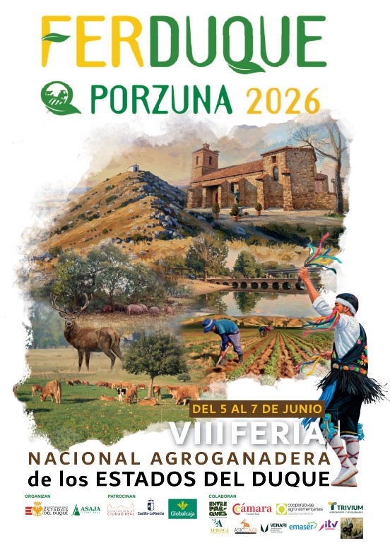 Ciudad Real, 20 de marzo de 2026. El Comité Organizador de FERDUQUE ha presentado hoy el cartel oficial de la VIII edición de la Feria Nacional Agroganadera de los Estados del Duque, que se celebrará del 5 al 7 de junio en Porzuna, consolidándose como una de las citas de referencia del sector agroganadero, agroalimentario y cinegético de Castilla-La Mancha.